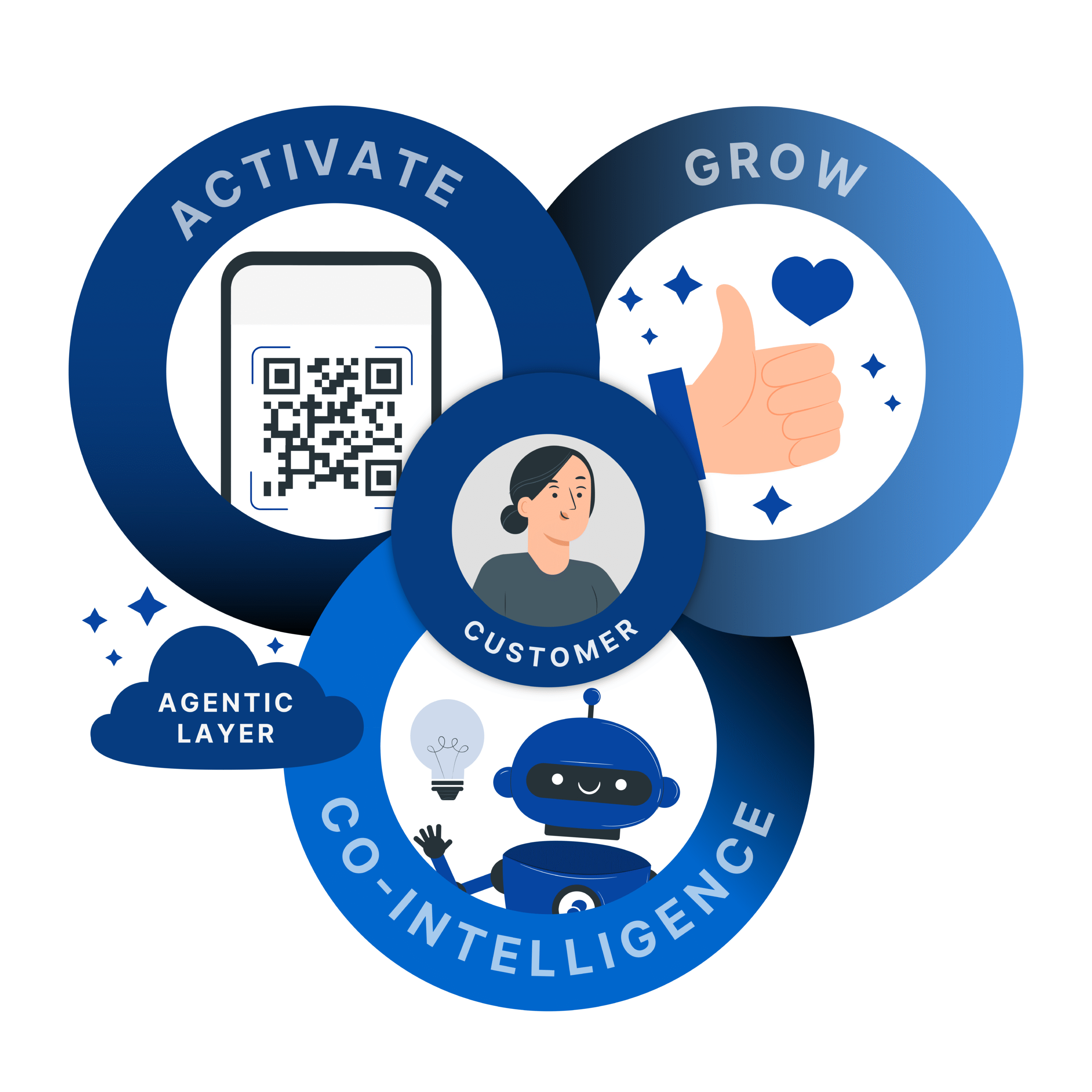 Agentic Engagement is the smart layer that connects people and brands – reacting in real time to guide actions, like a growth-focused nervous system.