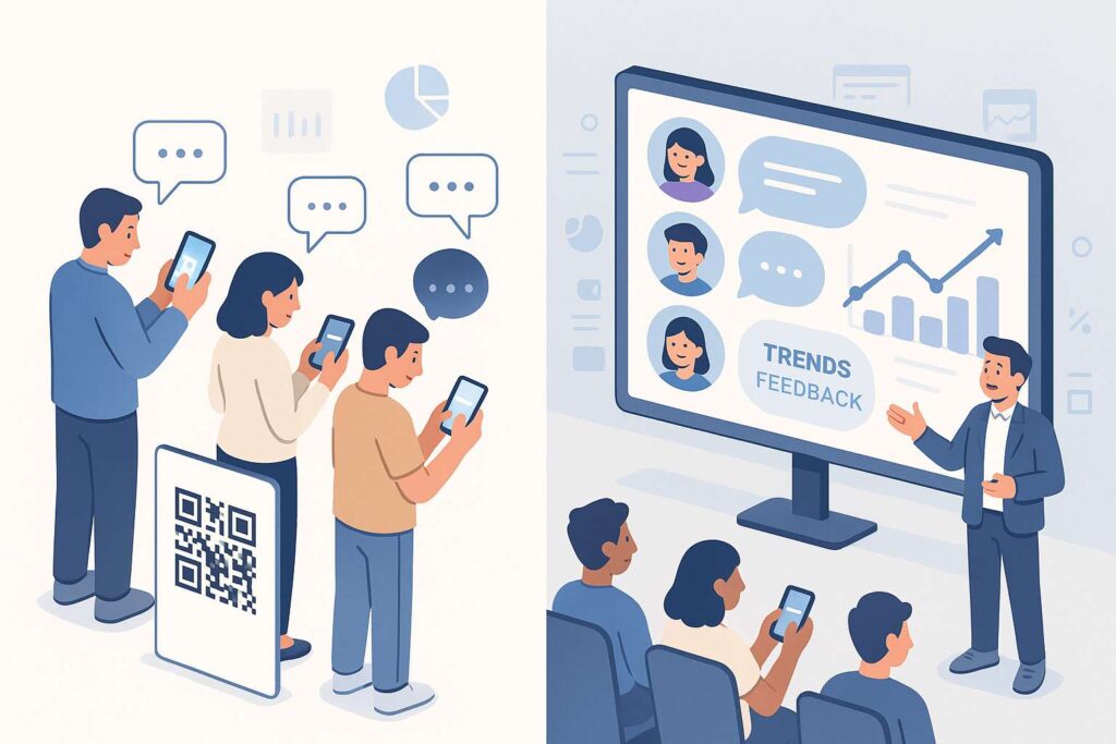 One learning was that it is extremely important how and where the participants are asked to scan the QR code. In the use case shown, this was first done by means of a notice placed near the displayed QR code.